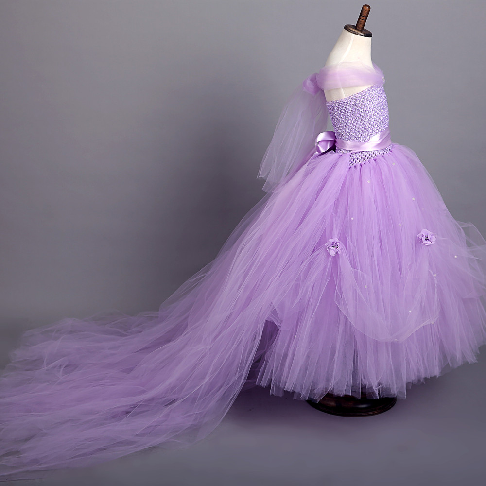 1-8Y Princess Tutu Tulle Flower Girl Dress Kids Party Pageant Bridesmaid Wedding Tutu Dress Pink Lavender Gown Dress Robe Enfant
