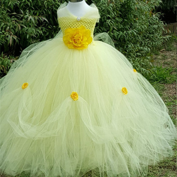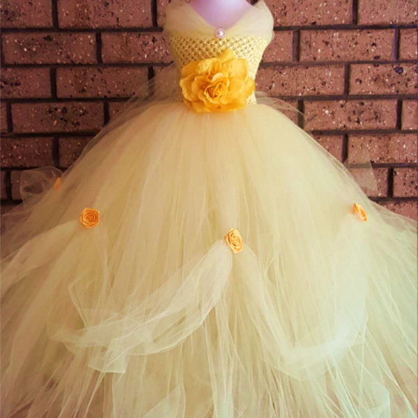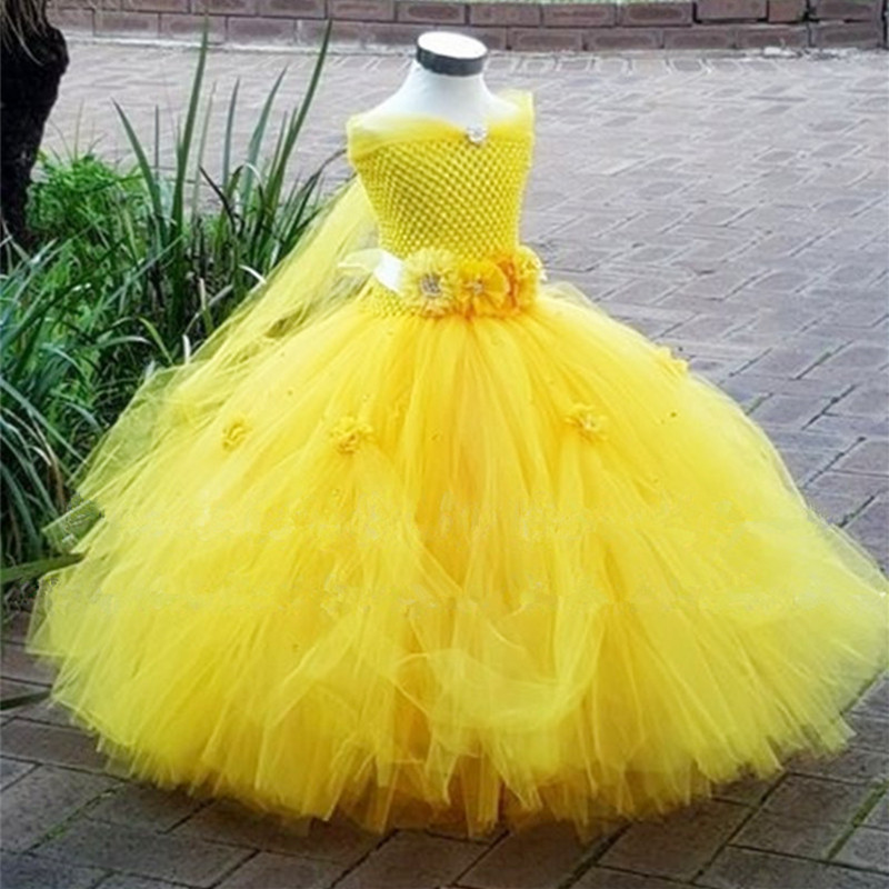 Belle Princess Tutu Dress Baby Kids Fancy Party Christmas Halloween Costumes Beauty Beast Cosplay Dress Flowers Girls Ball Gown