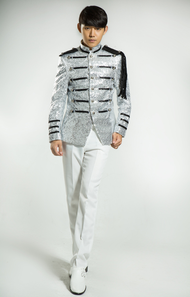 Be the first to review “(Jacket + Pants) Mens Silver Sequined Royal Court Male Singers Dress Shiny Slim Fit Suits Custom Made Suit”