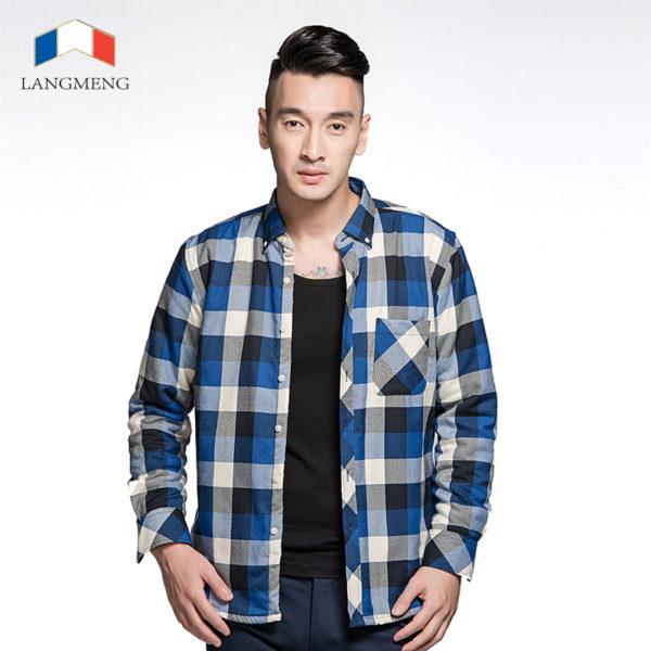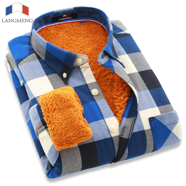 Langmeng 2017 Hot Sale Men Long Sleeve Super Warm Winter Shirt Mens Flannel Velvet Plaid Casual Dress Shirt Camisas Masculinas