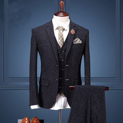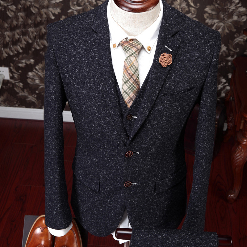 Men’s Black Suit Set Male Fashion Married Suits 3 Piece Woolen Suit Jacket Commercial Wedding Dress For Man