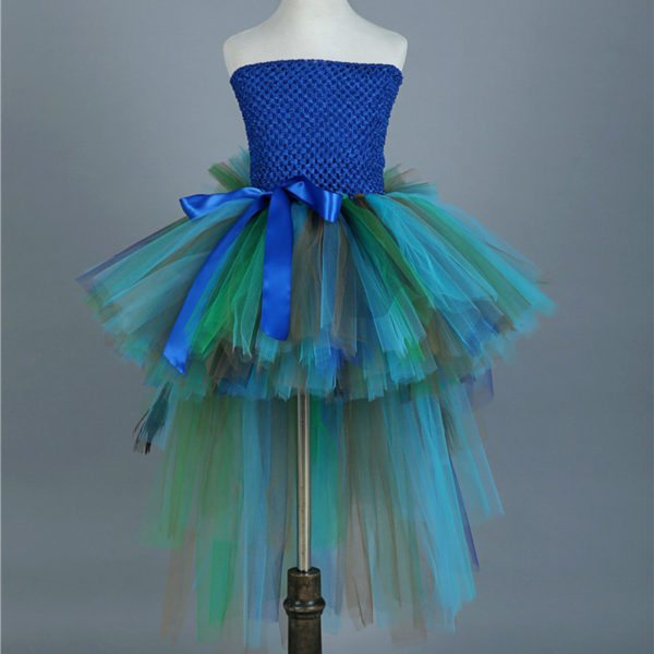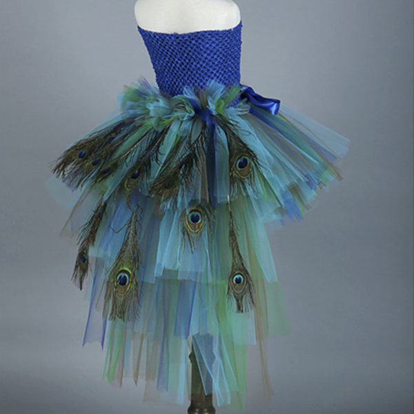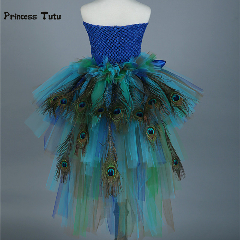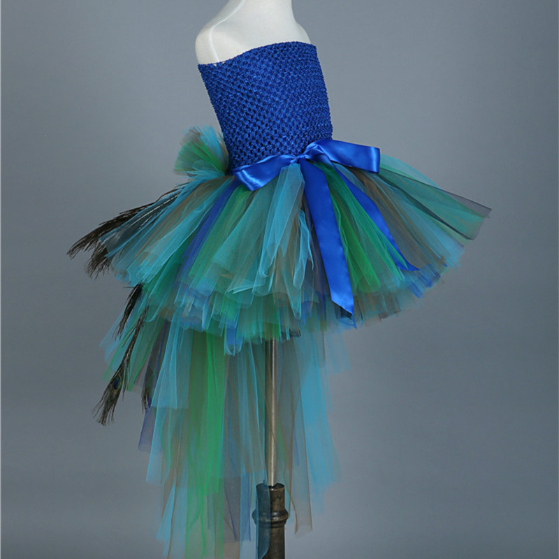 Pure Handmade Colorful Girls Peacock Tutu Dress Kids Party Tutus With Feather Girl Tulle Dresses Children Photography Clothing